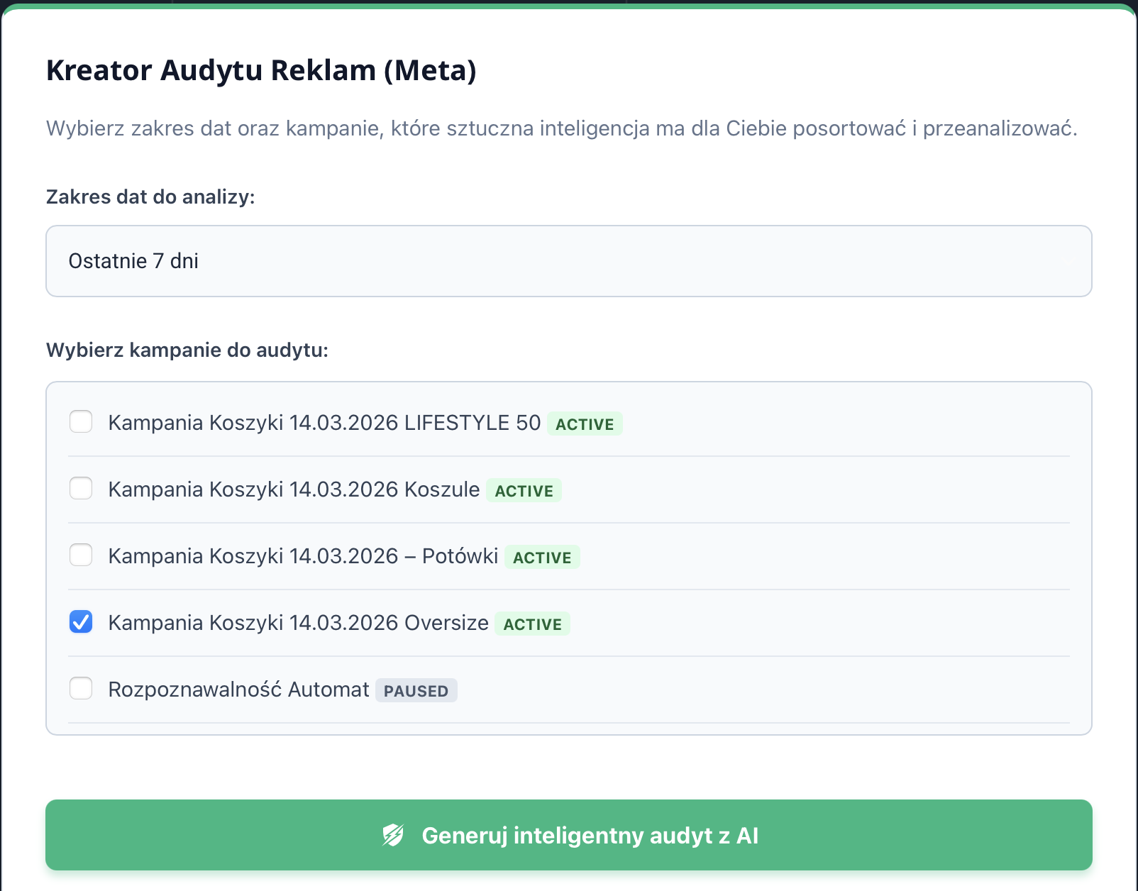 Przetestuj możliwości Audytora AI na własnych kampaniach, bez podpinania karty płatniczej.